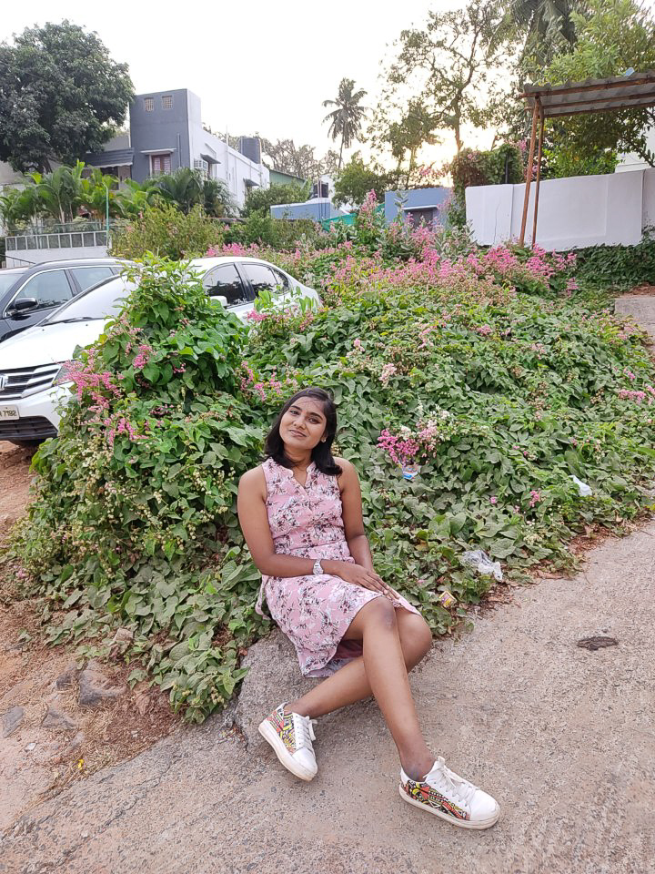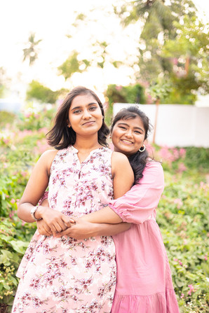 This shoot...in one sentence, would've been a disaster if it wasn't for the Lord. Seriously. It's because of God's Grace that we had an amazing day and everyone went home safe. So we were supposed to meet at St.Thomas Mount, right? You would think that a 24 year old who has lived all her life in Chennai would know that there are two entrances to the Mount and obviously everyone uses the second entrance for photoshoots. But nope, not me. neither did I know that there were two entrances, nor did I figure out, until it was too late that I had spent a good 20-25 minutes scouting and waiting at the wrong entrance for like an hour! Usually I meet my clients 15 minutes before the shoot begins but for this shoot we had planned to meet 30 mins before and it turned out to be a very good thing because we spent all 30 minutes trying to find each other. Oh and did I mention that we don't get cell service there? Made the search a whole lot easier, lol! I was internally panicking so bad! What if it takes forever for us to find each other and we lose all the light and the 60 mins shoot ends up being 30 mins or worse we don't get to shoot at all? I was panicking and praying and Praise God we found each other, perfectly in time for us to have amazing light and gorgeous flowers! Once we finished laughing at the fiasco that I had just caused, we started taking pictures and it was the besttttt! The location was a natural parking spot - meaning, it was a empty space and people just parked all their vehicles there but there was just enough space for us to squeeze in, there were these beautiful flowers everywhere and the sun was setting at the perfect spot...ah it was magical! These sweet girls are best friends and so cute! They had the best smiles and laughter and
